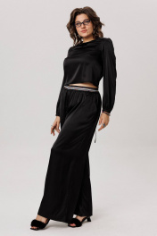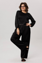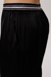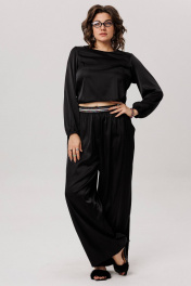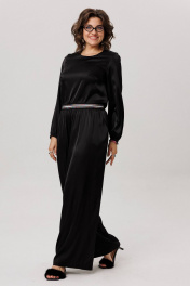 Легкие и струящиеся брюки, сотканные из изысканного арманийского шелка, дарят ощущение невесомой роскоши. Их высокая посадка и мягкие моделирующие защипы у талии создают безупречный, подчеркнуто элегантный силуэт. Свободный, расширяющийся к низу крой обеспечивает невероятную легкость движения и формирует динамичный образ. Эти брюки от Анелли — идеальный спутник для особых выходов, праздничных мероприятий и светских раутов, где важны блеск и безупречный крой. В то же время практичная резинка на поясе и удобные боковые карманы делают их удивительно комфортным и функциональным выбором и в теплое время года. Эта модель позволит вам создать цельный элегантный образ для любого повода — от неспешной повседневности до торжественного выхода. На модели в брюках в цвете «блестящий черный» блуза 1716. Замеры (резинка растянута): Размер 42: ОТ-80; ОБ-112; ДИ-104; ширина по низу - 62; Размер 44: ОТ-84; ОБ-116; ДИ-105; ширина по низу - 64; Размер 46: ОТ-88; ОБ-120; ДИ-104; ширина по низу - 66; Размер 48: ОТ-92; ОБ-124; ДИ-105; ширина по низу - 66; Размер 50: ОТ-96; ОБ-128; ДИ-104; ширина по низу - 68; Размер 52: ОТ-100; ОБ-132; ДИ-103; ширина по низу - 68;