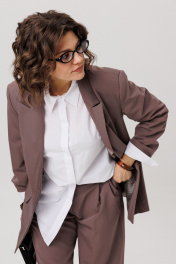 Этот костюм звучит как стильный и универсальный выбор для современного гардероба. Жакет с архитектурным кроем, принтованной подкладкой и функциональными деталями, такими как карманы с клапаном, добавляет ему изысканности и практичности. Брюки-палаццо с высокой посадкой, мягкими складками и боковыми карманами создают элегантный и комфортный силуэт, который подчеркивает фигуру и подходит для разных сезонов. Такой костюм от Анелли можно носить как вместе, создавая цельный образ, так и по отдельности, комбинируя жакет или брюки с другими элементами гардероба. Это делает его универсальным и практичным решением для различных ситуаций. Размер 48: Жакет: ОГ-96; ОТ-88; ДИ-72; ДР-59; Брюки: ОТ-80; ОБ-116; ДИ- 115. Размер 50: Жакет: ОГ-100; ОТ-92; ДИ-72; ДР-59; Брюки: ОТ-84; ОБ-120; ДИ- 115. Размер 52: Жакет: ОГ-104; ОТ-96; ДИ-72,5; ДР-60; Брюки: ОТ-88; ОБ-124; ДИ- 115