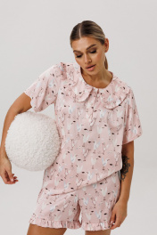 Элегантный шелковый костюм для уютных домашних дел и самых сладких снов. Это не просто пижама — это ритуал заботы о себе, доступный каждый вечер. Акцентный воротник блузы придает романтичность вашему образу, а разрезы по бокам и короткий рукав — легкость. Воротник блузы и отделка шорт рюшами создают атмосферу сказочности и воздушности. Пояс шорт на резинке с завязками подчеркивает изящество фигуры и не стесняет движения. В этой пижаме вы будете чувствовать себя комфортно, независимо от сезона. Размер 44: Блуза: ОГ-102, ОБ-104, ОП-40, ДИ-64, ДР-21; Шорты: ОТ-90, ОБ-106, ДИ-36, ШИ по низу - 66. Размер 46: Блуза: ОГ-106, ОБ-108, ОП-42, ДИ-64, ДР-23; Шорты: ОТ-94, ОБ-116, ДИ-37, ШИ по низу - 68. Размер 48: Блуза: ОГ-112, ОБ-114, ОП-42, ДИ-65, ДР-23; Шорты: ОТ-100, ОБ-116, ДИ-36, ШИ по низу - 70. Размер 50: Блуза: ОГ-116, ОБ-118, ОП-44, ДИ-66, ДР-24; Шорты: ОТ-104, ОБ-120, ДИ-39, ШИ по низу - 72. Размер 52: Блуза: ОГ-120, ОБ-122, ОП-44, ДИ-65, ДР-24; Шорты: ОТ-108, ОБ-124, ДИ-40, ШИ по низу -72