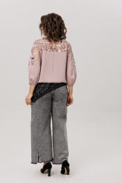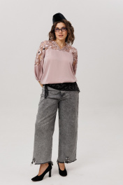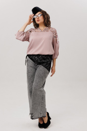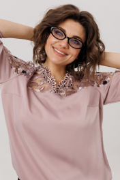 Эта блуза - воплощение изящной женственности и воздушного очарования. Её свободный, струящийся силуэт мягко обволакивает фигуру, даря ощущение лёгкости и невесомости. Фигурный вырез горловины плавными линиями подчёркивает красоту линий, добавляя образу утончённости в этом шикарном цвете «пудровая вуаль». Верхняя часть, словно лёгкое кружевное облако с изысканными кокетками на полочке, спинке и изящными вставками на рукавах, переходит в благородный гладкий атлас, мерцающий приглушённым блеском. Рукава три четверти, собранные у низа на тонкую резинку, и такой же аккуратный низ самой блузы создают мягкие, едва уловимые волны, добавляя образу воздушности и динамики. Эта вещь от Анелли - искусное сочетание романтичного кружева и мягкого сияния атласа, которое способно превратить любой день в маленькое событие. Она станет идеальным спутником как для светского праздника, так и для тёплого корпоративного вечера, где царят красота и элегантность. Размер 58: ОГ-132; ОТ-135; ОБ резинка растянута - 138; ОП-46; ДИ-64; ДР-46; Размер 60: ОГ-136; ОТ-139; ОБ резинка растянута - 142; ОП-46; ДИ-65; ДР-47; Размер 62: ОГ-140; ОТ-143; ОБ резинка растянута - 146; ОП-48; ДИ-65; ДР-46.