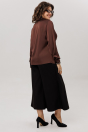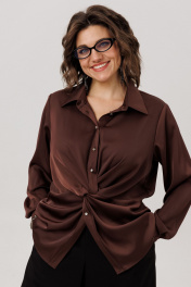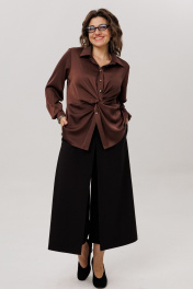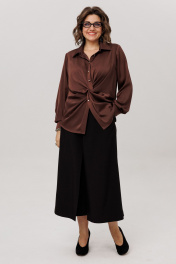 Эта блуза от Анелли - настоящее искусство, воплощенное в нежной, струящейся ткани, которая ласкает кожу шелковистым сиянием Настоящая магия начинается прямо над линией талии, где рождается виртуозная драпировка. Ткань, послушная и пластичная, изящно перекручивается, формируя мягкий, объемный узел из живописных складок. Этот элемент не просто украшение - это скульптурный акцент, который притягивает взгляды, подчеркивает талию и придает всему силуэту уникальный, динамичный характер. Детали довершают образ безупречного качества: строгий отложной воротник на стойке, длинные рукава, заканчивающиеся элегантными манжетами на пуговицу, и аккуратная застежка на петли и пуговицы на притачной планке. Блуза создана для того, чтобы даже самый обычный день наполнился ощущением особенного стиля и утонченной женственности. На моделе в блузе цвета «айс брауни» юбка-кюлоты 1787. Размер 48: ОГ-106; ОТ-102; ОБ-114; ОП-40; ДИ-63; ДР-61; Размер 50: ОГ-110; ОТ-106; ОБ-118; ОП-41; ДИ-63; ДР-62; Размер 52: ОГ-114; ОТ-110; ОБ-122; ОП-42; ДИ-64; ДР-62; Размер 54: ОГ-120; ОТ-116; ОБ-128; ОП-44; ДИ-64; ДР-62; Размер 56: ОГ-124; ОТ-120; ОБ-132; ОП-45; ДИ-65; ДР-62; Размер 58: ОГ-128; ОТ-124; ОБ-136; ОП-45; ДИ-66; ДР-62.