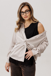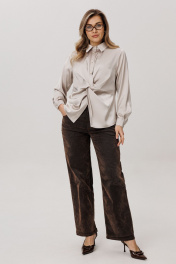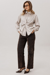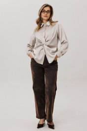 Эта блуза от Анелли - настоящее искусство, воплощенное в нежной, струящейся ткани, которая ласкает кожу шелковистым сиянием Настоящая магия начинается прямо над линией талии, где рождается виртуозная драпировка. Ткань, послушная и пластичная, изящно перекручивается, формируя мягкий, объемный узел из живописных складок. Этот элемент не просто украшение - это скульптурный акцент, который притягивает взгляды, подчеркивает талию и придает всему силуэту уникальный, динамичный характер. Детали довершают образ безупречного качества: строгий отложной воротник на стойке, длинные рукава, заканчивающиеся элегантными манжетами на пуговицу, и аккуратная застежка на петли и пуговицы на притачной планке. Блуза создана для того, чтобы даже самый обычный день наполнился ощущением особенного стиля и утонченной женственности. На моделе в блузе цвета «айс брауни» юбка-кюлоты 1787. Размер 48: ОГ-106; ОТ-102; ОБ-114; ОП-40; ДИ-63; ДР-61; Размер 50: ОГ-110; ОТ-106; ОБ-118; ОП-41; ДИ-63; ДР-62; Размер 52: ОГ-114; ОТ-110; ОБ-122; ОП-42; ДИ-64; ДР-62; Размер 54: ОГ-120; ОТ-116; ОБ-128; ОП-44; ДИ-64; ДР-62; Размер 56: ОГ-124; ОТ-120; ОБ-132; ОП-45; ДИ-65; ДР-62; Размер 58: ОГ-128; ОТ-124; ОБ-136; ОП-45; ДИ-66; ДР-62.