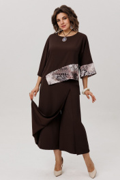 Вероятно, это именно тот костюм, который вы так долго искали. Сочетание строгого силуэта и лёгкой небрежности в цвете «древесная змея». Его основу составляет блузон шоколадного оттенка, оживлённый тонким змеиным узором. Он свободно обрисовывает фигуру, смягчая линии цельнокроеными рукавами. А его главная деталь - фигурный, словно волной очерченный низ, который придаёт статичному крою неожиданную динамику. Низ костюма это юбка-брюки-кюлоты на высокой талии, струящиеся и расклешённые. Модель на запах с мягкими складками создаёт ощущение простора и лёгкости, а скрытые, фигурные карманы в швах берегут чистоту линий. Этот ансамбль от Анелли дышит той особой роскошью, что заключена в безупречной свободе и универсальности. Он готов стать центром вечернего праздника, но с той же уверенностью будет сопровождать вас в будни, будь то деловая встреча или прогулка по городу. И каждая вещь, самостоятельно сочетаясь с другими предметами гардероба, раскрывается с новой стороны, предлагая бесконечные возможности для стиля. Приобрести юбку-кюлоты можно отдельно, артикул 1783. Блузон: ОГ-106; ОБ-112; ОП-44; ДИ-65; ДР от горловины - 51; Юбка-кюлоты: ОТ-92; ОБ-104; ДИ-84; ширина по низу - 74; Размер 48: Блузон: ОГ-110; ОБ-116; ОП-46; ДИ-65; ДР от горловины - 51; Юбка-кюлоты: ОТ-96; ОБ-108; ДИ-84; ширина по низу - 46; Размер 50: Блузон: ОГ-114; ОБ-120; ОП-48; ДИ-66; ДР от горловины - 51; Юбка-кюлоты: ОТ-100; ОБ-112; ДИ-84; ширина по низу - 76; Размер 52: Блузон: ОГ-118; ОБ-124; ОП-50; ДИ-66; ДР от горловины - 51; Юбка-кюлоты: ОТ-108; ОБ-116; ДИ-85; ширина по низу - 78; Размер 54: Блузон: ОГ-122; ОБ-128; ОП-52; ДИ-67; ДР от горловины - 51; Юбка-кюлоты: ОТ-108; ОБ-120; ДИ-85; ширина по низу - 78; Размер 56: Блузон: ОГ-126; ОБ-132; ОП-54; ДИ-68; ДР от горловины - 51; Юбка-кюлоты: ОТ-112; ОБ-124; ДИ-85; ширина по низу - 80; Размер 58: Блузон: ОГ-130; ОБ-136; ОП-56; ДИ-69; ДР от горловины - 51; Юбка-кюлоты: ОТ-116; ОБ-128; ДИ-85; ширина по низу - 82; Размер 60: Блузон: ОГ-135; ОБ-141; ОП-56; ДИ-70; ДР от горловины - 52; Юбка-кюлоты: ОТ-120; ОБ-132; ДИ-86; ширина по низу - 82; Размер 62: Блузон: ОГ-140; ОБ-146; ОП-58; ДИ-71; ДР от горловины - 53; Юбка-кюлоты: ОТ-124; ОБ-136; ДИ-86; ширина по низу - 84;