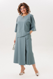 Вероятно, это именно тот костюм, который вы так долго искали. Сочетание строгого силуэта и лёгкой небрежности в цвете «родниковая вода». Блузон свободно обрисовывает фигуру, смягчая линии цельнокроеными рукавами. А его главная деталь - фигурный, словно волной очерченный низ, который придаёт статичному крою неожиданную динамику. Низ костюма это юбка-брюки-кюлоты на высокой талии, струящиеся и расклешённые. Модель на запах с мягкими складками создаёт ощущение простора и лёгкости, а скрытые, фигурные карманы в швах берегут чистоту линий. Этот ансамбль от Анелли дышит той особой роскошью, что заключена в безупречной свободе и универсальности. Он готов стать центром вечернего праздника, но с той же уверенностью будет сопровождать вас в будни, будь то деловая встреча или прогулка по городу. И каждая вещь, самостоятельно сочетаясь с другими предметами гардероба, раскрывается с новой стороны, предлагая бесконечные возможности для стиля. Размер 46: Блузон: ОГ-106; ОБ-112; ОП-44; ДИ-65; ДР от горловины - 51; Юбка-кюлоты: ОТ-92; ОБ-104; ДИ-84; ширина по низу - 74; Размер 48: Блузон: ОГ-110; ОБ-116; ОП-46; ДИ-65; ДР от горловины - 51; Юбка-кюлоты: ОТ-96; ОБ-108; ДИ-84; ширина по низу - 46; Размер 50: Блузон: ОГ-114; ОБ-120; ОП-48; ДИ-66; ДР от горловины - 51; Юбка-кюлоты: ОТ-100; ОБ-112; ДИ-84; ширина по низу - 76; Размер 52: Блузон: ОГ-118; ОБ-124; ОП-50; ДИ-66; ДР от горловины - 51; Юбка-кюлоты: ОТ-108; ОБ-116; ДИ-85; ширина по низу - 78; Размер 54: Блузон: ОГ-122; ОБ-128; ОП-52; ДИ-67; ДР от горловины - 51; Юбка-кюлоты: ОТ-108; ОБ-120; ДИ-85; ширина по низу - 78 Размер 56: Блузон: ОГ-126; ОБ-132; ОП-54; ДИ-68; ДР от горловины - 51; Юбка-кюлоты: ОТ-112; ОБ-124; ДИ-85; ширина по низу - 80; Размер 58: Блузон: ОГ-130; ОБ-136; ОП-56; ДИ-69; ДР от горловины - 51; Юбка-кюлоты: ОТ-116; ОБ-128; ДИ-85; ширина по низу - 82; Размер 60: Блузон: ОГ-135; ОБ-141; ОП-56; ДИ-70; ДР от горловины - 52; Юбка-кюлоты: ОТ-120; ОБ-132; ДИ-86; ширина по низу - 82; Размер 62: Блузон: ОГ-140; ОБ-146; ОП-58; ДИ-71; ДР от горловины - 53; Юбка-кюлоты: ОТ-124; ОБ-136; ДИ-86; ширина по низу - 84.