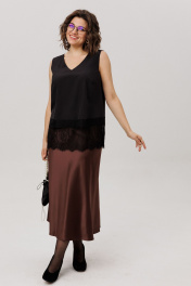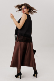Рожденная из струящегося премиального атласа, эта юбка облегает фигуру нежным прикосновением. Её крой, построенный на косую, дарит удивительную пластику каждому движению, создавая мягкие, текучие волны. Силуэт, давно ставший воплощением элегантной классики, с длиной миди, говорит на языке тихой уверенности. Боковая молния, скрытая в шве, обеспечивает идеальную посадку и служит незаметным порталом в этот мир безупречного силуэта. Юбка от Анелли верная спутница: днем в офисе сохраняет безупречную строгость, а с наступлением вечера, подчеркнутая каблуком, преображается, ловя и мягко отражая свет, словно шёлковая луна. Это не просто предмет гардероба, а основа безукоризненного стиля. На модели в юбке цвета «горький шоколад» кружевной топ 1664 и блуза 1663. Размер 48: ОТ-80; ОБ-110; ДИ-86; Размер 50: ОТ-82; ОБ-112; ДИ-86; Размер 52: ОТ-86; ОБ-117; ДИ-86; Размер 54: ОТ-92; ОБ-122; ДИ-86; Размер 56: ОТ-98; ОБ-127; ДИ-86.