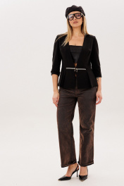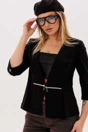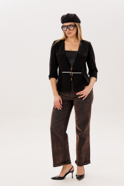 Жакет «молния», в котором сочетаются мягкая женственность и продуманная архитектура силуэта. Полуприлегающий крой деликатно подчеркивает фигуру, а отрезная линия талии с баской на складках создает выразительную, но ненавязчивую форму, добавляя образу легкости и утонченности. Декоративные молнии в талиевых швах становятся тонким акцентом, который привлекает внимание, не нарушая общей лаконичности. Аккуратные вытачки по переду и спинке формируют красивую посадку, а лаконичный вырез горловины мягко вытягивает силуэт и делает образ более изящным. Укороченный двухшовный рукав со шлицей в локтевом шве, добавляет жакету аккуратности и комфорта в движении. Выполненный из трикотажа и дополненный подкладкой, жакет от Анелли дарит ощущение уюта и уверенности на каждый день - он легко вписывается в повседневный гардероб, создавая образ с характером, где комфорт и женственность звучат в одной гармонии. На модели топ 767. Размер 48: ОГ-100; ОТ-84; ОБ-106; ОП-34; ДИ-62; ДР-47; Размер 50: ОГ-104; ОТ-88; ОБ-110; ОП-34; ДИ-62; ДР-47; Размер 52: ОГ-108; ОТ-92; ОБ-114; ОП-36; ДИ-62; ДР-47; Размер 54: ОГ-112; ОТ-96; ОБ-118; ОП-38; ДИ-62; ДР-46;