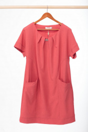 Платье женское прямого силуэта, выполнено из ткани с эффектом "меланж", средней длины. По переду выполнены рельефные швы, на боковых частях переда обработаны карманы с листочками с наклонным входом, по линии горловины заложены складки. Спинка со средним швом, рукав цельнокроенный, укороченный, на притачной манжете. Горловина округлой формы, дополнена декоративной деталью. Низ платья оформлен притачной манжетой. По швам выполнена декоративная отстрочка. Платье представлено в нескольких оттенках. Замеры: Рост фотомодели – 168 см. ОГ- обхват груди; ОТ-обхват талии; ОБ-обхват бедер; ДИ-длина изделия; ДР-длина рукава (от выреза горловины). Размер 46. ОГ-100; ОТ-102; ОБ-104; ДИ-91; ДР-28. Размер 48. ОГ-102; ОТ-104; ОБ-106; ДИ-92; ДР-29. Размер 50. ОГ-106; ОТ-108; ОБ-110; ДИ-92; ДР-29. Размер 52. ОГ-110; ОТ-112; ОБ-114; ДИ-94; ДР-30. Размер 54. ОГ-114; ОТ-116; ОБ-120; ДИ-96; ДР-30. Размер 56. ОГ-116; ОТ-118; ОБ-124; ДИ-97; ДР-31.