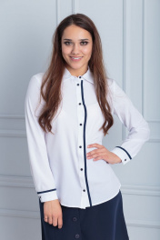 Блузка классического покроя. Полочки с нагрудными вытачками от низа. Спинка с талевыми вытачками и цельнокроеной кокеткой,переходящей на полочку.Воротник на стойке,застежка на пуговицы на цельнокроеной планке.Рукава втачные с манжетами на пуговицы. Замеры для ( 46) размера. Длина по спинке: 65 см. Рукав: длинный-59см. Силуэт: прямой Статус: Офис, повсидневное. Р-р: 42 (ПОГ:42, ПОТ:36,ПОБ:46) Р-р: 44 (ПОГ:44, ПОТ:38,ПОБ:48) Р-р: 46 (ПОГ:46, ПОТ:40,ПОБ:50) Р-р: 48 (ПОГ:48, ПОТ:42,ПОБ:52) Р-р: 50 (ПОГ:50, ПОТ:44,ПОБ:54) Р-р: 52 (ПОГ:52, ПОТ:46,ПОБ:56) Р-р: 54 (ПОГ:54, ПОТ:48,ПОБ:58)