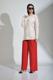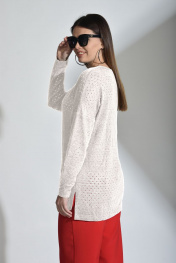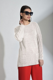Джемпер в мелкую сетку, выполнен из качественной пряжи смешанного состава. В меру прозрачен, поэтому можно использовать без дополнительных элементов одежды (маек, топов, футболок, водолазок). Трикотажное полотно средней плотности, произведенное из волокон шерсти, вискозы, полиэстера, ткань мягкая и приятная на ощупь. Горловина - «лодочка», прямой силуэт, ассиметричного фасона с боковыми вырезами. Приспущенный рукав. По переду выполнены два функциональных карманчика. Рост фотомодели – 174 см. Замеры для каждого размера: ОГ- обхват груди; ОТ- обхват талии; Об- обхват бедер; ДИ-длина изделия; ДР-длина рукава. Р. 42 ОГ-84; ОТ-84; ОБ-90; ДИ (по спинке )-72, по переду-60; ДР от гроловины-64. Р.44 ОГ-88; ОТ-88; ОБ-92; ДИ (по спинке )-72, по переду-62; ДР от гроловины-66. Р.50 ОГ-100; ОТ-100; ОБ-106; ДИ (по спинке )-73, по переду-64; ДР от гроловины-64. Р.52 ОГ-104; ОТ-104; ОБ-112; ДИ (по спинке )-74, по переду-65; ДР от гроловины-67. Р.54 ОГ-108; ОТ-108; ОБ-120; ДИ (по спинке )-75, по переду-66; ДР от гроловины-71.