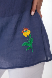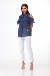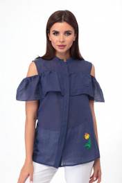 Блуза из тончайшей, как вуаль, хлопковой ткани. Прямой силуэт. Перед и спинка с притачными кокетками и воланом, переходящим на плечи. Воротник-стойка, потайная застёжка на пуговицах. Аппликация-вышивка на левой полочке. Отличный выбор для летнего дня! При сьемке в образе использованы брюки Anelli Style – 228 белые. Замеры: Рост фотомодели – 172 см. Размер фотомодели – 44. ОГ- обхват груди; ОБ-обхват бедер; ДИ-длина изделия Размер 42. ОГ-95; ОБ-102; ДИ-67. Размер 44. ОГ-99; ОБ-106; ДИ-67. Размер 46. ОГ-103; ОБ-110; ДИ-67. Размер 48. ОГ-107; ОБ-114; ДИ-67. Размер 50. ОГ-111; ОБ-118; ДИ-67. Размер 52. ОГ-115; ОБ-121; ДИ-67.