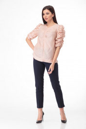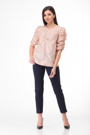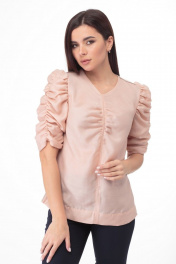 Очаровательная блуза из тончайшего полотна с драпировками Anelli 807 пудра