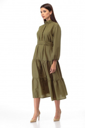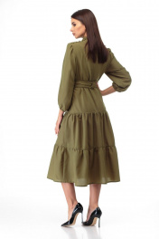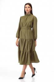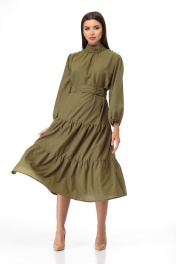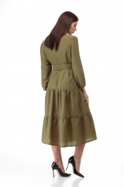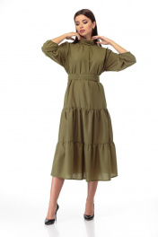 Платье из вискозы с драпировкой и воланами по бедрам Anelli 846 хаки