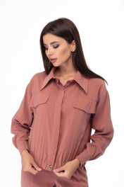 Деловая блуза сафари с карманами из текстиля Anelli 875.1 терракот