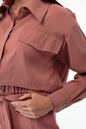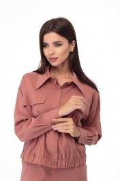 Элегантный блузон в стиле «сафари». жакет прямого силуэта, однобортный с потайной застежкой на пуговицы, отлажным воротником на стойке. Низ на притачном поясе с эластичной тесьмой внутри. Накладные карманы с клапанами. Рукава рубашечного покроя с декоративным подрезом с отстрочкой. Низ рукава на притачном манжете, дополнен съёмным завязывающимся поясом. Замеры: Рост фотомодели – 171 см. Размер фотомодели – 46. ОГ-обхват груди; ОТ-обхват талии; ОБ-обхват бедер; ДИ-длина изделия; ДР-длина рукава. Размер 46. Блузон: ОГ- 104; ОТ-100; ОБ-98; ДИ-51; ДР – 52. Размер 48. Блузон: ОГ- 108; ОТ-104; ОБ-102; ДИ-51,5; ДР – 52,5. Размер 50. Блузон: ОГ- 112; ОТ-108; ОБ-106; ДИ-52; ДР – 53. Размер 52. Блузон: ОГ- 116; ОТ-112; ОБ-110; ДИ-52,5; ДР – 53,5. Размер 54. жакет: ОГ- 120; ОТ-116; ОБ-114; ДИ-53; ДР – 54.