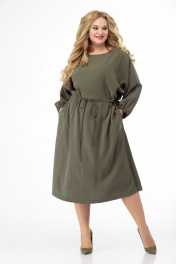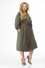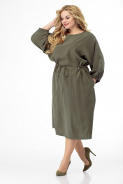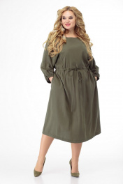 Платье с рельефами и длиной ниже колена Anelli 884 хаки