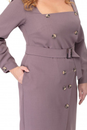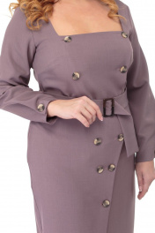 Великолепное платье красивого оттенка для элегантной леди. Платье полуприлегающего силуэта, длиной ниже колена, со смещённой застёжкой на петли пуговицы, без подкладки. На передних частях выполнены нагрудные вытачки, в боковых швах обработаны карманы. На спинке талиевые вытачки. Актуальная форма выреза и линии борта подчеркнута фурнитурой натурального оттенка. Рукава втачные, длинные, с отделкой пуговицами. Съемный пояс с пряжкой дополняет образ. Замеры: Рост фотомодели 172 см. Размер фотомодели – 50. ОГ-обхват груди; ОТ-обхват талии; Об-обхват бедер; ДИ-длина изделия (по спинке от выреза горловины); ДР-длина рукава. Размер 48. ОГ-96; ОТ-88; ОБ-108; ДИ-106; ДР-58. Размер 50. ОГ-100; ОТ-92; ОБ-112; ДИ-106; ДР-58. Размер 52. ОГ-104; ОТ-96; ОБ-116; ДИ-107; ДР-58. Размер 54. ОГ-108; ОТ-100; ОБ-120; ДИ-108; ДР-58. Размер 56. ОГ-112; ОТ-104; ОБ-124; ДИ-108; ДР-58.