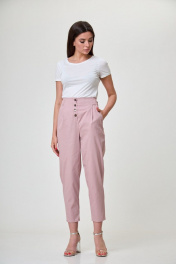 Розовые брюки с высокой посадкой и зауженными штанинами Anelli 948 розовый_кизил