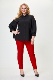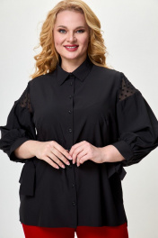 Черная блуза из вискозы с кружевами и воротником Anelli 997 черный