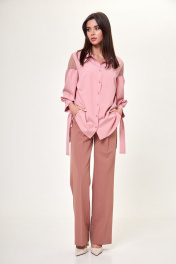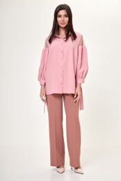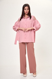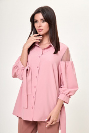 Блуза с кружевами и воротником на стойке из хлопка Anelli 997 пудра