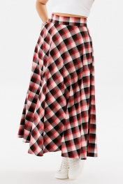 Эффектная женская юбка из плательной ткани в клетку — универсальная одежда на все случаи жизни. Юбка кроя полусолнце с легкостью впишется в любой образ, добавив нотку женственности и романтики. Она прекрасно комбинируется с вещами в классическом стиле или повседневном casual стиле. Струящаяся ткань скроет недостатки фигуры и эффектно выделит достоинства. Юбка А-образного силуэта, длиной миди, на широком притачном поясе с застежкой на молнию в боковом шве, с боковыми наклонными карманами. Длина юбки (с поясом): 98 см