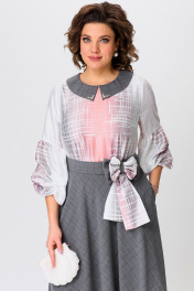 Необычное нарядное платье украсит любую женщину, независимо от возраста, а стильная клетка добавит образу элегантности. Платье подойдет для особых и торжественных случаев. Платье из двух видов ткани полуприлегающего силуэта, расклешенное книзу. Воротник отложной плосколежащий, декорирован бусинами. Платье отрезное по линии талии. По переду обработаны нагрудные вытачки. Спинка с застежкой молнией в среднем шве. Рукав втачной длинной 3/4, на резинке понизу, с горизонтальным подрезом и с защипами. В боковых швах расположены карманы. Особый шарм платью придаст пояс из основной ткани, декорированный бантом. Длина платья: 119 см Длина до талии: 37 см Длина рукава: 49 см