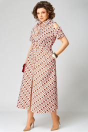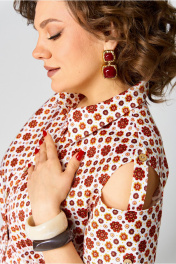 Интересное женское платье-рубашка из хлопковой ткани просто незаменимая вещь в гардеробе любой женщины в летний период. Благодаря своей универсальности платье отлично подойдет для любого мероприятия или повода: на деловой или дружеской встрече, в офисе или кафе. Платье полуприлегающего силуэта, расклешенное книзу. Воротник отложной, на притачной стойке. Платье отрезное по линии талии, на широкой резинке. Платье с центральной застежкой на петли и пуговицы на притачных планках. Полочка с нагрудными вытачками. В боковых швах юбки функциональные карманы. Рукав втачной короткий, с открытым плечом и декоративной патой на пуговице, понизу - притачная манжета. Длина платья: 133 см Длина до талии: 43,5 см Ширина пояса: 5 см Длина рукава: 22 см