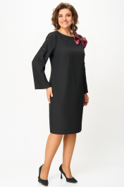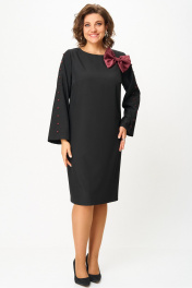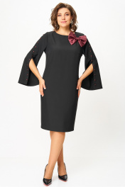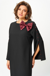 Элегантное платье классического черного цвета выручит в любой ситуации. Вы будете роскошно выглядеть и на официальном, и на любом торжественном мероприятии. Фасон платья подойдет на любой тип фигуры, выгодно скроет недостатки и удачно подчеркнёт достоинства. Платье женское полуприлегающего силуэта из костюмно-плательной ткани. Горловина округлой формы. Перед с нагрудными вытачками. Спинка с талиевыми вытачками, застежкой на молнию и разрезом в среднем шве. Рукав втачной прямой длинный с разрезом и декоративной застежкой на петли и пуговицы. По низу платья в боковом шве высокий разрез. Декорировано платье съемным бантом. Длина платья: 101 см Длина рукава: 62 см