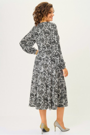 Роскошное женское платье с расклешенной юбкой – прекрасный выбор для тех, кто ценит универсальность и комфорт. Платье выполнено из струящегося трикотажа "масло". Благодаря крою и ткани, платье прекрасно садится по фигуре, выгодно подчеркивая ее достоинства и скрывая недостатки. Платье полуприлегающего силуэта, длиной макси, отрезное по линии талии. Горловина округлой формы, обработана обтачкой. Перед лифа с рельефными швами, по спинке - талиевые вытачки. Застежка на молнию в боковом шве. Юбка платья - "полусолнце", расклешенная книзу, с функциональными карманами в боковых швах. Рукав втачной прямой, длинный, по низу — манжет на резинке. В комплекте к платью прилагаются съемное украшение-брошь и пояс, который поможет создать акцент на талии. Длина платья: 128 см Длина рукава: 85 см