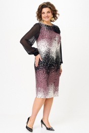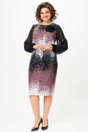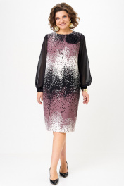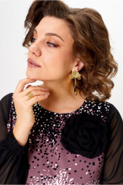 Элегантное платье с прозрачными рукавами станет идеальным выбором для деловой встречи или торжественного мероприятия. Платье выполнено из эластичного трикотажа "масла". Свободное облегание и длина чуть ниже колена подчеркнут вашу элегантность и женственность, а широкие рукава из шифона добавят образу легкость и изящество. Платье полуприлегающего силуэта с округлой горловиной. Перед с нагрудными вытачками. Спинка с талиевыми вытачками, застежкой молнией и разрезом в среднем шве. Рукав втачной прямой длинный, на резинке по низу. В комплекте к платью прилагается съемное украшение-брошь из шифона в виде цветка. Длина платья: 103 см Длина рукава: 65 см