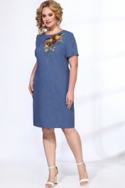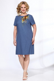 Летнее платье с вышивкой и приталенным силуэтом Angelina & Сompany 565 синий