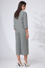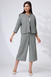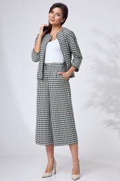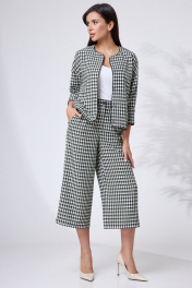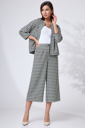 В этом сезоне стилисты рекомендуют обратить внимание на костюмы с укороченными жакетами и брюками. Костюм выполнен из мягкой практически немнущейся костюмной ткани. Можно носить и по-отдельности, создавая множество образов. Жакет прямого силуэта, без подкладки. Горловина округлой формы. Застежка центральная на пришивные потайные кнопки. Рукав втачной, длиной 3/4, со спущенным плечевым швом, по низу рукава притачная манжета. Жакет декорирован кантом по горловине, по линии застежки, по плечевому шву и манжете. Укороченные прямые брюки с комфортной посадкой. Брюки на притачном поясе с застежкой на петлю и пуговицу и по задним половинкам со сборкой на резинку. В боковых швах функциональные наклонные карманы. Длина жакета: 53 см Длина рукава от горловины: 58 см Длина брюк: 75 см