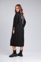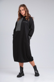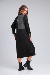 Интересное платье в стиле бохо может быть одновременно простым и красивым. Декоративные детали - подрезы, нашивки, карманы - делают платье особенным и оригинальным. В сочетании с различной обувью платье будет по-разному смотреться: с кедами - как спортивное, с обувью на каблуке - как офисное, с лоферами - как повседневное. Платье свободного силуэта из костюмно-плательной ткани. Горловина округлой формы со стойкой. Перед платья с застежкой на молнию в среднем шве, нагрудными вытачками, подрезом и карманом-обманкой из отделочной ткани. Спинка со средним швом, подрезом из отделочной ткани и декоративной нашивкой. В боковых швах глубокие функциональные карманы. Рукав втачной длинный, по низу декоративная манжета с застежкой на петлю и пуговицу. По низу платья по бокам вставлены резинки.