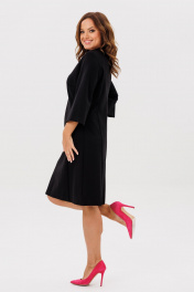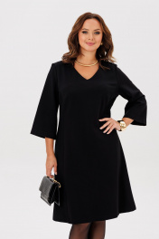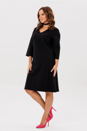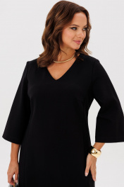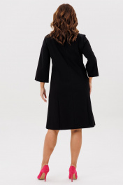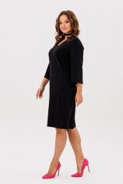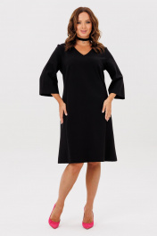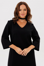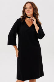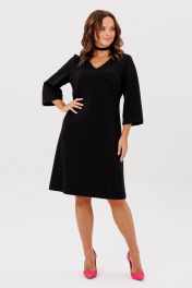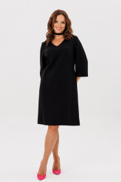 Платье на каждый день, трикотажное прямого силуэта умеренного объема. Вырез горловины V-образный, рукав 3/4 рубашечного покроя - 47см. Длина платья по спинке 97 см. Рост модели на фото 170см.