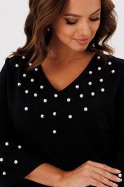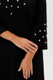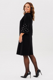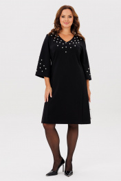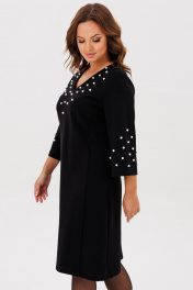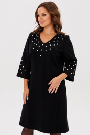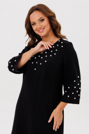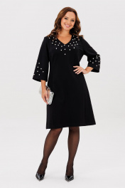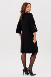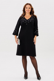 Платье трикотажное прямого силуэта умеренного объема. Вырез горловины V-образный, рукав 3/4 рубашечного покроя - 47см. Длина платья до колена 97 см. Рост модели на фото 170см.