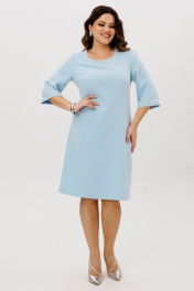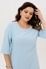 Платье нарядное прямого силуэта умеренного объема. Вырез горловины округлый, по спинке застежка на потайную молнию, рукав 3/4 рубашечного покроя - 44см. Длина платья по спинке 97 см. Рост модели на фото 170см.