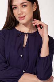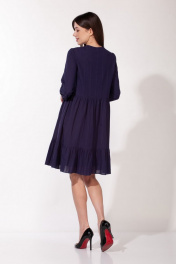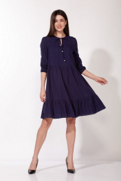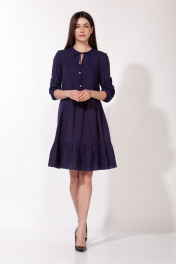 Платье женское свободного силуэта из текстильного полотна. Перед с V- образным вырезом и завязками с наконечником. Рукав втачной. Длина изделия-96 см, Длина рукава-51 см.