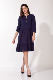 Платье свободного кроя из хлопка с V-образным вырезом Anna Majewska 1451 темно-синий