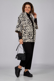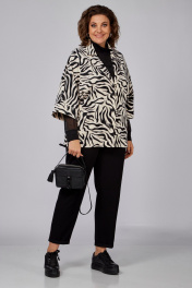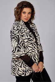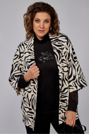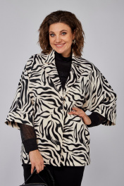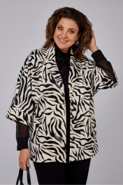 Жакет полуприлегающего силуэта, длиной до линии бедер с цельнокроеными рукавами. Жакет с центральной застежкой на три петли и пуговицы. Перед с боковыми прорезными карманами с листочкой. Спинка со средним швом. Рукава, укороченные с манжетой. Воротник пиджачного типа.