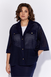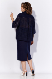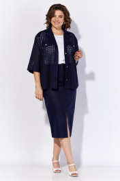 Костюм женский из смесовой ткани. Костюм состоит из жакета и юбки. Жакет свободного кроя с центральной застежкой на петли и пуговицы. По переду выполнены декоративные клапана с петлей и пуговицей. Спинка с горизонтально кокеткой и складкой по центру. Рукав одношовный втачной с манжетой. Длина рукава-37,5 см, Длина жакета в базовом размере – 68 см, Длина юбки – 80 см.