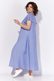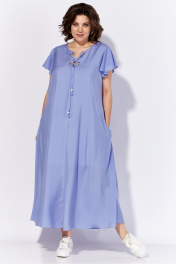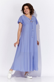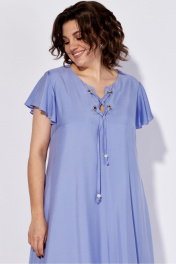Платье женское А-образного силуэта. По переду средний шов с обработанным разрезом. Вырез горловины фигурный с декоративными люверсами со шнуром и бусинами. Спинка со средним швом, в котором обработана тесьма-молния. Рукава втачные, декоративные. Длина рукава – 16 см. Длина по спинке в базовом размере -128 см.