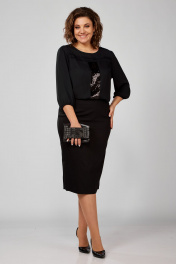 Комплект женский, двухпредметный, состоящий из блузы и юбки. Блуза свободного силуэта из шифона украшена пайетками. Длина изделия - 63 см. Длина рукава - 39 см. Юбка женская из смесовой ткани. Юбка, зауженная к низу, длиной ниже уровня коленей. Застежка по среднему шву на потайную молнию. Переднее полотнище с двумя вытачками от талии с каждой стороны. По бокам настрочена декоративная тесьма. Заднее полотнище с талиевыми вытачками и средним швом, в котором обработана шлица. По поясу отрезная кокетка с резинками. Юбка на отлетной подкладке.