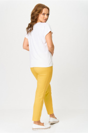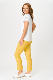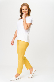 Майка женская прямого силуэта из вискозы для повседневной носки , горловина обработана бейкой , рукава короткие втачные , на левом рукаве декоративная тесьма .