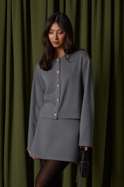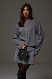 Юбка-мини. Выполнена из мягкого трикотажного полотна. Трапецевидный крой. Пояс стабильный. Брендированная подкладка. Застежка потайная молния в боковом шве. Длина 40 см.