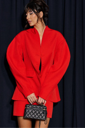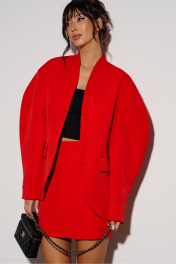 Юбка прямого кроя. Выполнена из костюмной ткани красного цвета. С подкладкой. Застежка - молния в среднем шве заднего полотна. Длина 42 см