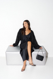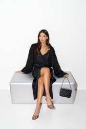 Кардиган из черного ворсистого полотна с пайетками ANNETE A2059