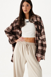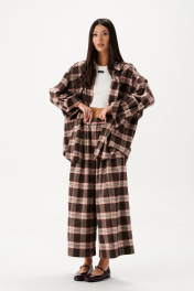 Рубашка прямого свободного кроя. Выполнена из хлопкого полотна. Воротник отложной. Застёжка центральная на пуговицы. По переду на уровни линии груди карманы с клапаном. Рукав спущенный, свободный, с манжетой на пуговице. Длина рукава от края горловины 77см. Спинка отрезная со сборкой, длин спинки от края горловины 76 см.