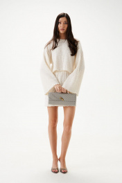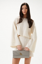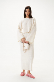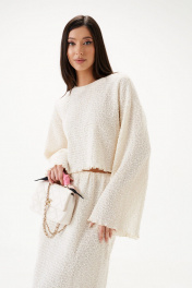 Джемпер свободного кроя. Выполнен из теккстильной ткани «букле-венгерка». Круглый вырез горловины. Рукав втачной, немного спущен. Длина рукава 50 см. Длина спинки 40 см