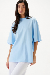 Футболка прямого кроя. Выполнена их хлопкового полотна. Горловина круглая с довязом. Рукав втачной. Длина рукава 29 см. Длина спинки 70 см
