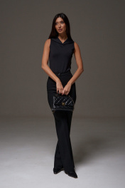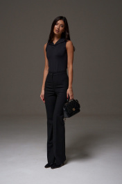 Боди прилегающего силуэта выполнен из эластичного полотна. Характеристики: прилегающий силуэт, горловина стойка, по низу застежки на три кнопки. Длина от верхнего края плеча до низа 47 см.