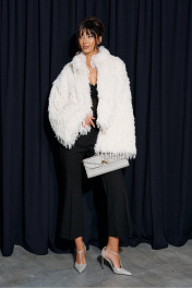 Топ женский, в стиле Ампир. Верх выполнен из атласной ткани, нижня баска из шифона. Регулируемые брители. По верхней части лифа по центру сборка. Длина по спинке